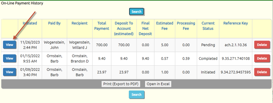 When this happens, you need to post the payment manually. To make this easier, we've added a function to the On-Line Payment History page.
