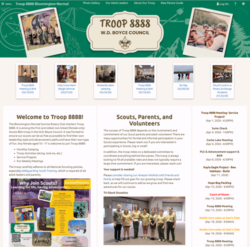 Troop 8888 created their own custom CSS to create a pleasing color palette that works perfectly with their professionally composed banner image.